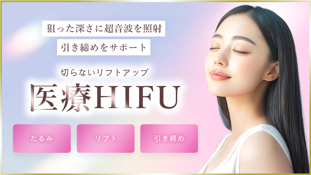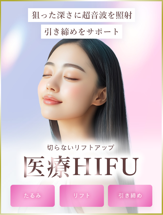 超音波による熱エネルギーを使用して、短時間で肌のリフトアップやしわ・たるみの改善、体の部分的な引き締め等の効果が期待できる施術です。