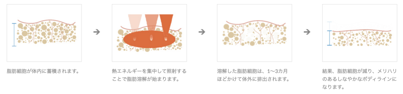 脂肪だけに熱がフォーカスするため痛みがほとんどありません。