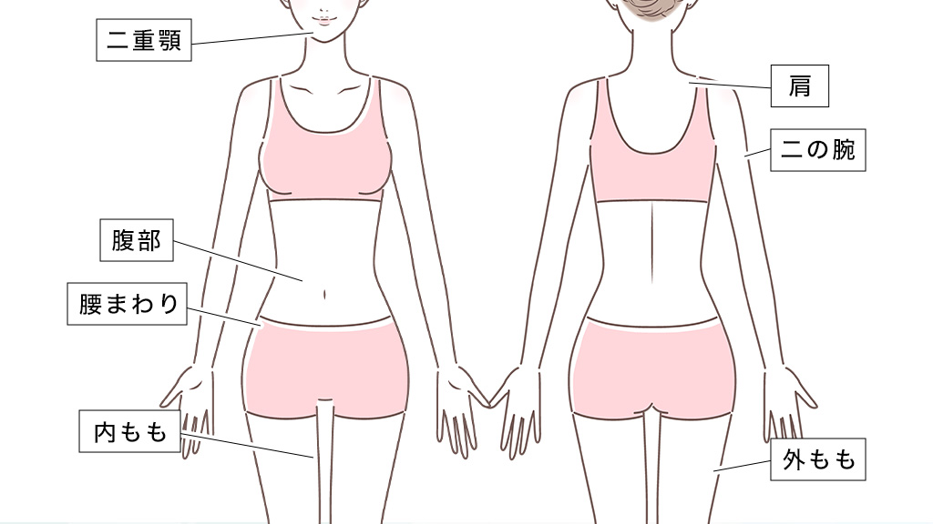 気になる脂肪をピンポイントで減らすことができます。フェイスライン(二重あご・頬)、二の腕、腹部などに対応。