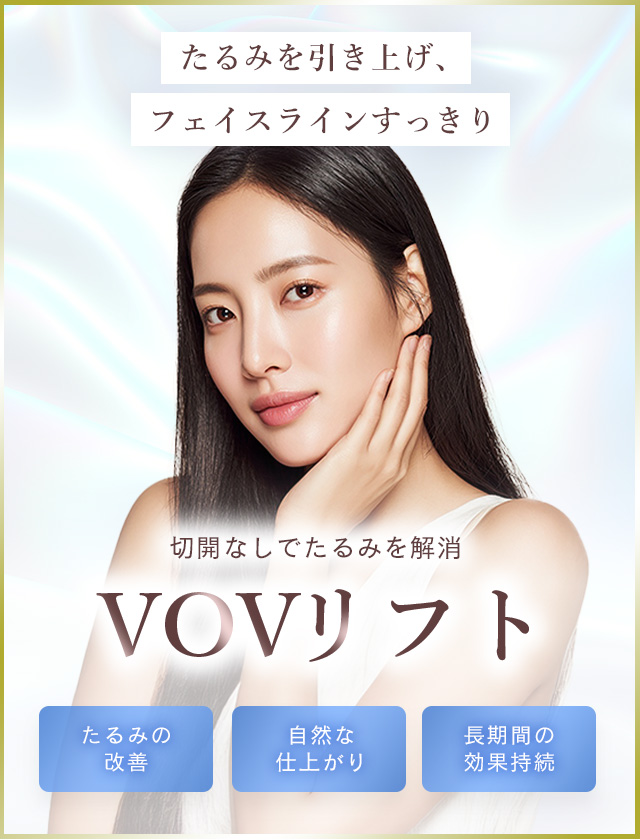 VOVリフト・プレミアムは、細かい「コグ」がついた糸を皮下組織(脂肪内)に引っ掛けることで、たるみを引き上げます。施術後の針穴が顔に残らないので、直後から通常のメイクができ、ダウンタイム(腫れ・青あざ)が少ないのが特徴です。治療直後より効果が期待できます。VOVリフト・プレミアムは、吸収糸のPCLを使用し、しなやかで、強度が高く、施術後の痛みも少なく、持続期間が長い、次世代のスレッドリフトです。